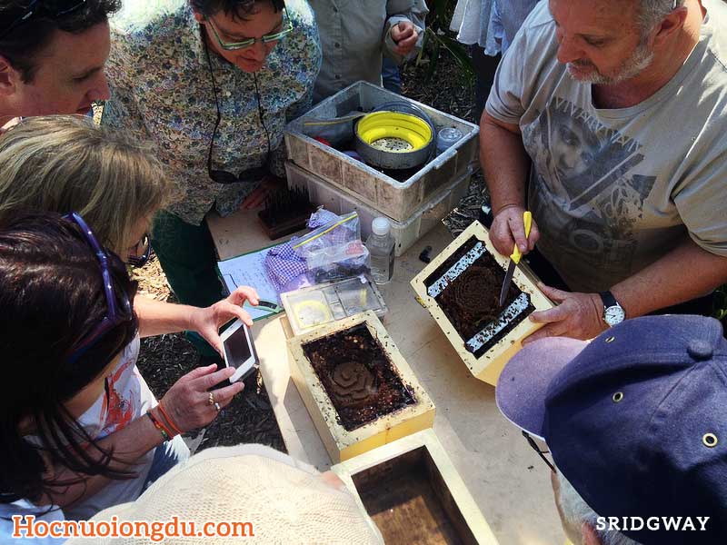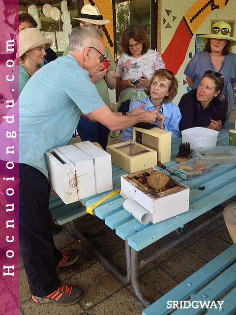 Hình một người nuôi ong ở Úc đang chia một đàn ong dú trước mặt khách tham quan với thao tác cực kỳ đơn giản
