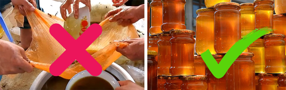 Hình trái, mật ong kém chất lượng. Hình phải mật ong dú cực kỳ ngon