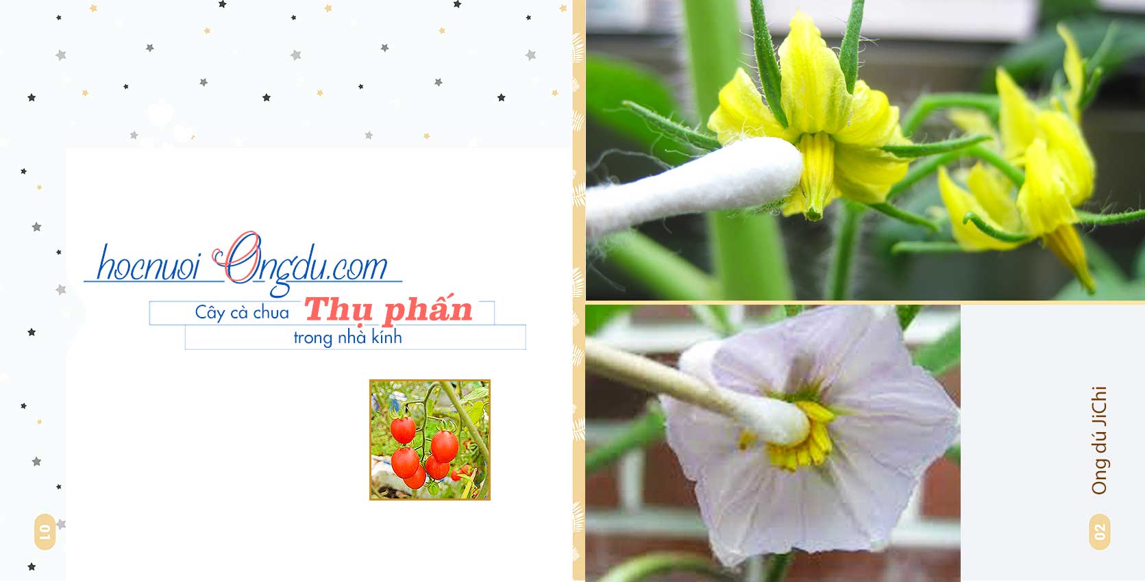 "Bạn chỉ cần dùng một cái tăm bông khều nhẹ vào từng nhụy hoa, từ hoa này sang hoa khác. lúc đó, phấn hoa từ hoa này sẽ rơi ra, dính vào đầu tăm bông rồi dính vào nhụy của các hoa khác như vậy là hoa cà chua đã được thụ phấn để đậu quả rồi đấy."