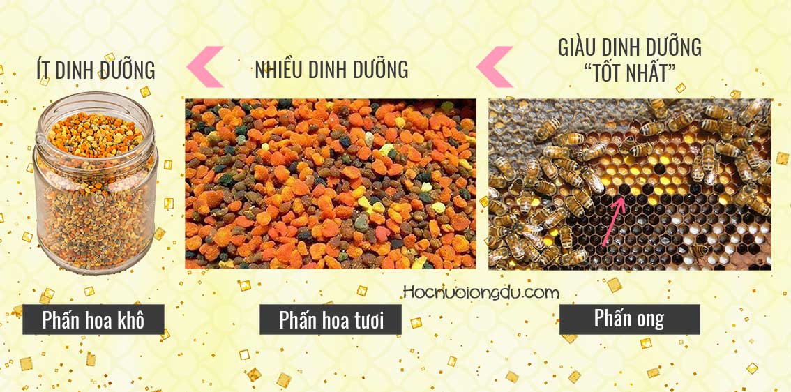 Sữa ong chúa phải được uống bằng thìa, vào sáng sớm, vì vậy ông bà của bạn có thể từ chối nó. Và phấn ong sẽ là sự lựa chọn tốt nhất, nhưng nó rất khó tìm và khá đắt. Bởi vì Phấn Ong Khác Với Phấn Hoa Ong Thế Nào? [Bee Bread & Pollen]